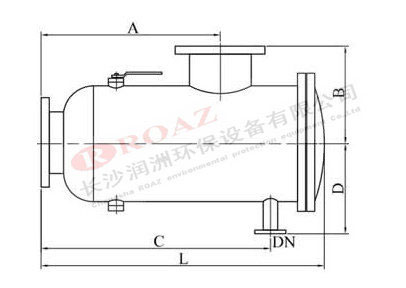 | 型號 | L(mm) | A(mm) | B(mm) | C(mm) | D(mm) | 排污口DN | 流量(T/h) |